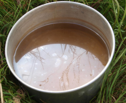 Oxidized manganese can also interact with tannins in coffee and tea causing it to turn into a nasty black sludge. It also tends to be super gross looking and tough to drink (as seen in the bucket).