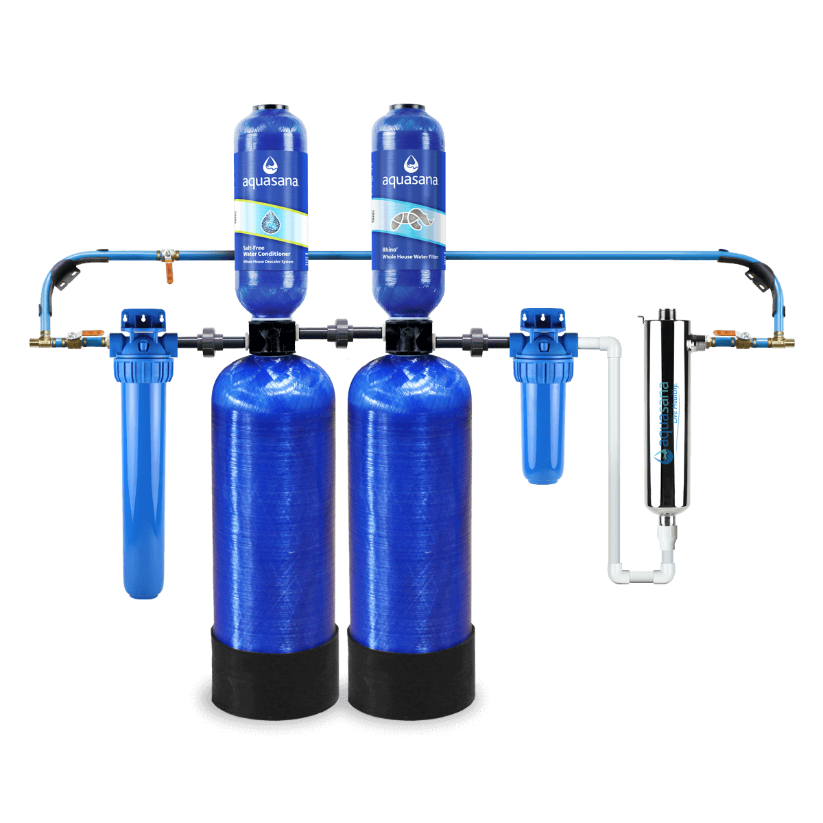 The Aquasana Rhino® Well Water with UV filtration system's unique upflow, dual tank design increases water contact time with contaminant grabbing media and prevents clogging or media channeling.